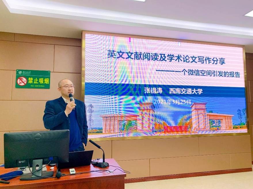 张祖涛教授做客“日本a片 讲坛”,讲授《英文文献阅读及学术论文写作分享》