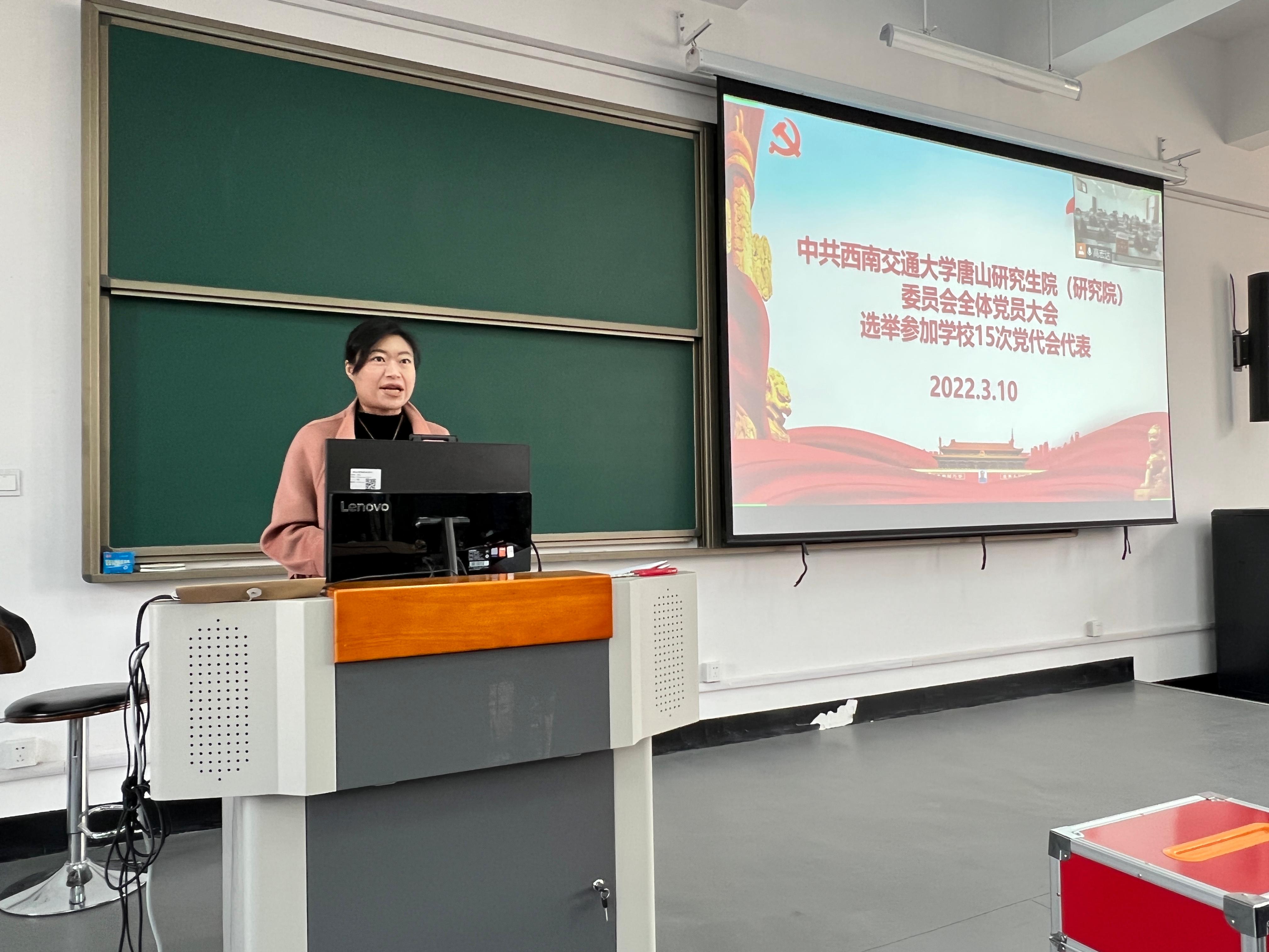 2022310日,中共日本a片 唐山研究生院(研究院)委员会召开全体党员大会,选举唐山研究生院(研究院)党委出席中共日本a片 第十五次代表大会代表,唐山研究生院(研究院)全体党员参会。会议由唐山研究生院(研究院)党委副书记梁思颖主持。