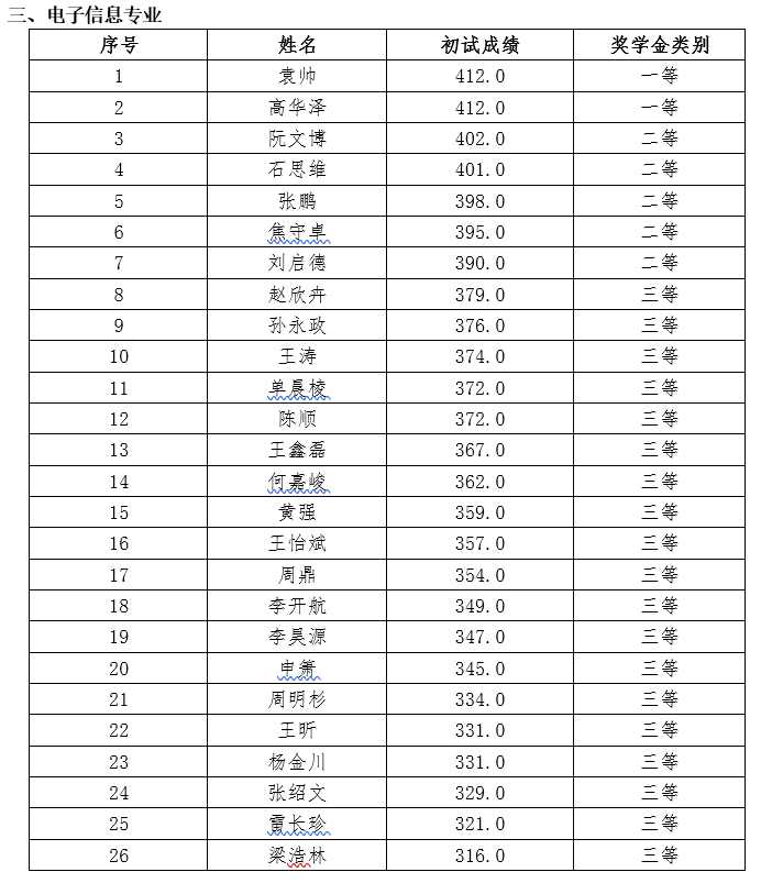研究生一年级奖学金(即新生入学奖学金)评定综合总成绩计分标准为研究生参加全国研究生入学统一考试的笔试总成绩,如出现总成绩相同,则以思想政治、英语及数学科目总成绩排名为准。经研究生奖助工作委员会评审,现将 2021级新生学业奖学金获奖名单公示如下: