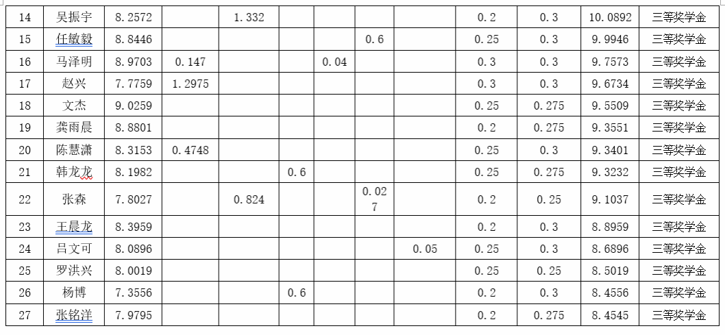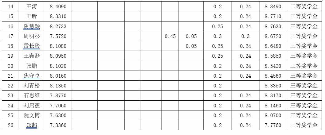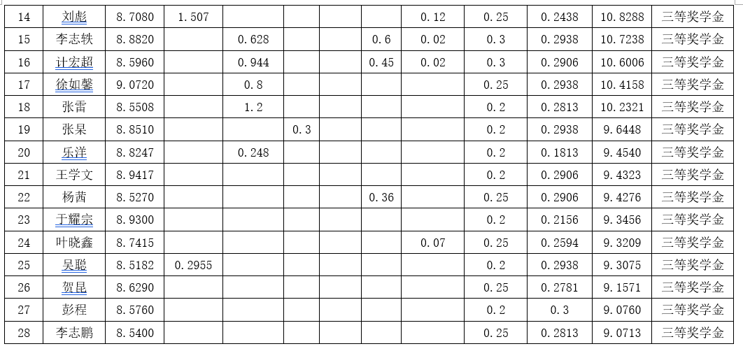 根据《日本a片 研究生奖(助)学金评定办法》,按综合成绩排名确定最终获奖类别(综合成绩=学业成果成绩+思想道德素质评价成绩+第二学年综合成绩*10%),现将2021级2022-2023学年研究生学业奖学金获奖名单公示如下: