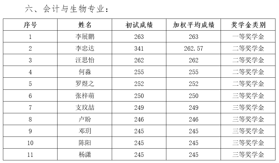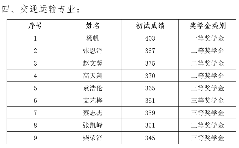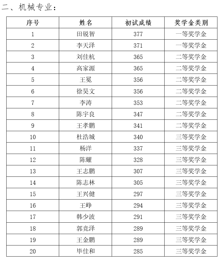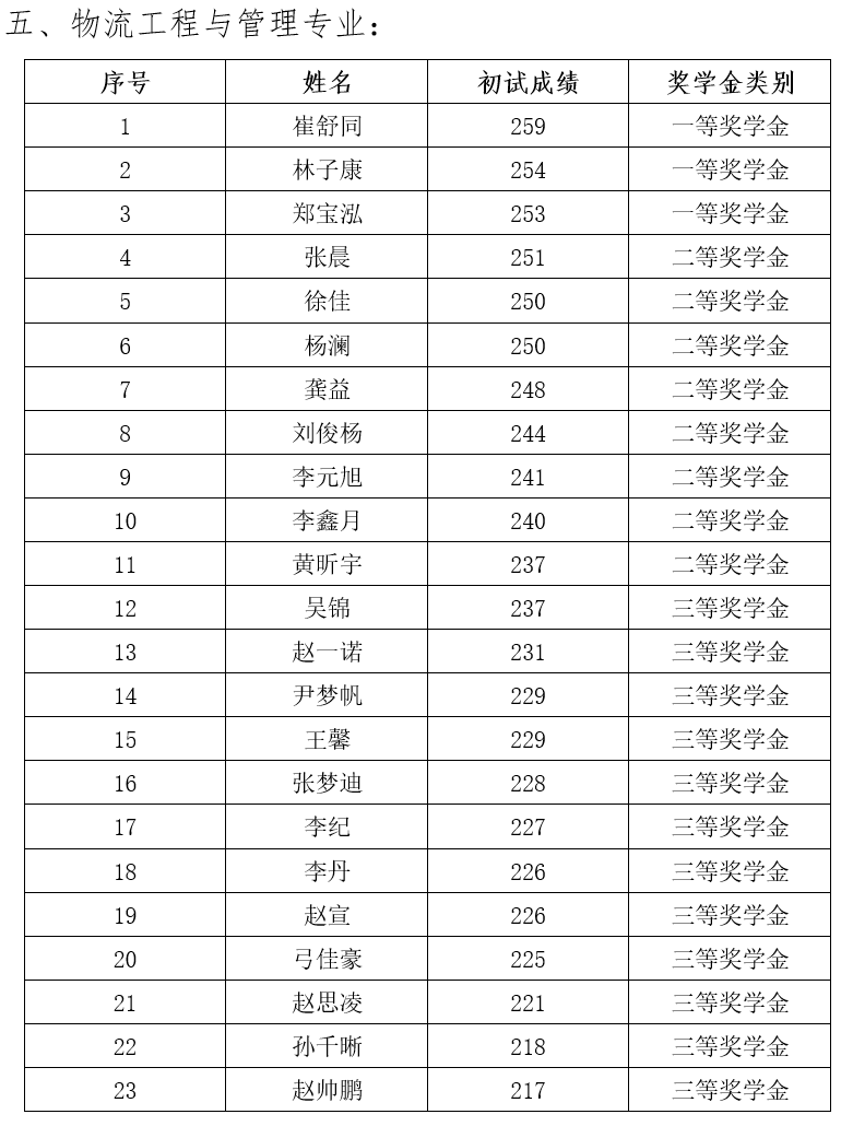 研究生一年级奖学金(即新生入学奖学金)评定综合总成绩计分标准为研究生参加全国研究生入学统一考试的笔试总成绩,如出现总成绩相同,物流工程与管理专业以管理类综合能力成绩排名为准,其他专业以思想政治、英语及数学科目总成绩排名为准。经研究生奖助工作委员会评审,现将2024级新生学业奖学金获奖名单公示如下: