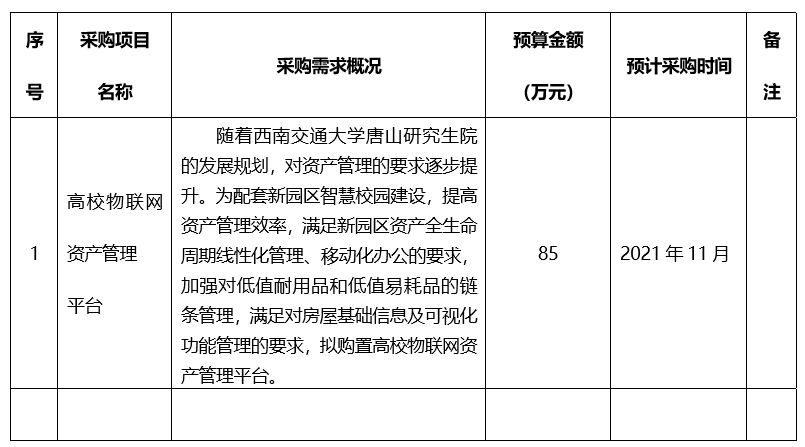 为便于供应商及时了解本单位采购信息,现将日本a片 高校物联网资产管理平台采购意向公开如下: